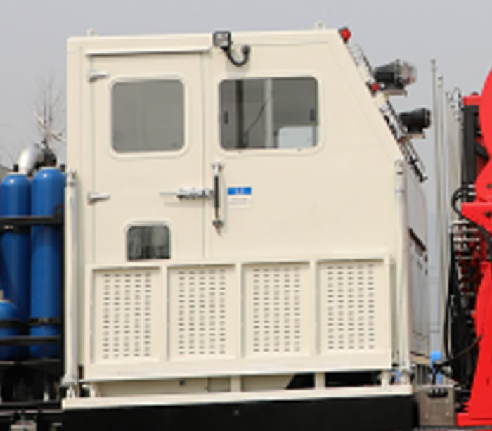 控制室:所有作業工況下的操作,以及各項參數的儀表顯示,均集中在控制室操作臺上,包括注入頭、油管滾筒、防噴器、防噴盒、發動機等電、氣、液控制。控制室采用可升降結構,可以清晰地觀察油管滾筒和注入頭的運轉狀態。