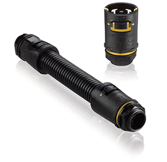 Adaptaflex為柔性導線管系統提供了獨特的創新型解決方案。制造商以往都是分開生產接頭和密封圈,然后將其安裝在一起,或由客戶自己裝配。這樣既增加了裝配時間,又易產生誤差。- 尼龍66主體;