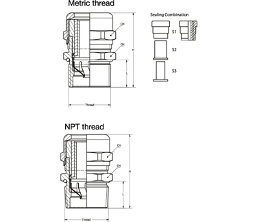 | Part no | Metric thread | Cable range | Nominal dimensions (mm/in) | |||||