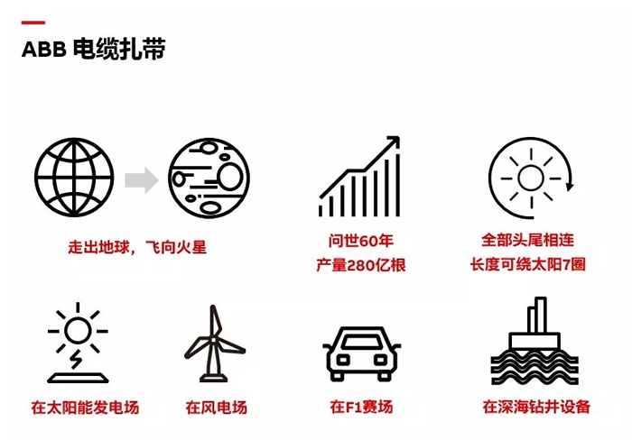 電纜扎帶雖然只是一個簡單的產(chǎn)品,但在現(xiàn)代社會中不可缺少。2018年,在紀(jì)念電纜扎帶問世六十周年之際,ABB集團(tuán)旗下的通貝部門將見證其第280億根Ty-Rap 電纜扎帶的誕生。