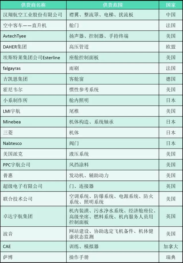 值得注意的是,這16家航空系統供應商全部都是歐洲和美國的公司,如果我們查看中國商飛所有的48家一級供應商,17家中國本土公司,23家外資或者合資公司,除去1家做客艙乘客廣播和顯示屏等系統的日本松下航電,其他供應商全部是歐美公司。