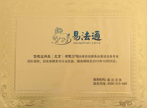 信德邁科技(北京)有限公司正處于企業成長階段,也是各種法律風險積累階段,如果不及時評估和規避這些風險或對法律風險采取有效的應對措施,將極大的制約企業走向規模化。因而,我們公司的法律顧問咨詢服務簽約易法法務專業團隊,提供有效的法律服務。