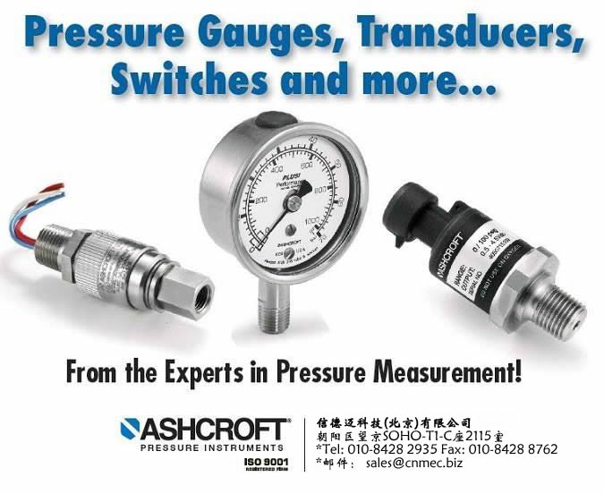 Ashcroft傳感器,壓力表,溫度開關(guān),溫度表,校驗(yàn)設(shè)備以及各種類型的壓力溫度儀表均通過ISO9001認(rèn)證。工業(yè)用表以及通用表尺寸在1”至12”之間,量程小于100000psi。