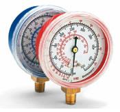 This pressure gauge comes in 2 1/2" dial and offers 4 refrigeration scales (R12, R22, R502, 134A). The connection time is 1/8" npt and can come in blue or red casing.