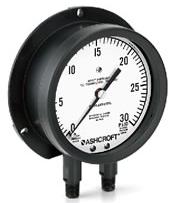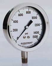 This is a very unique gauge to Ashcroft. It has a solid front case design with full blowout back and comes in a 4 1/2" dial size. The case and wetted materials are stainless steel (inconel 718 for high pressures) and is available at 15 psi all the way up to 100,000 psi.