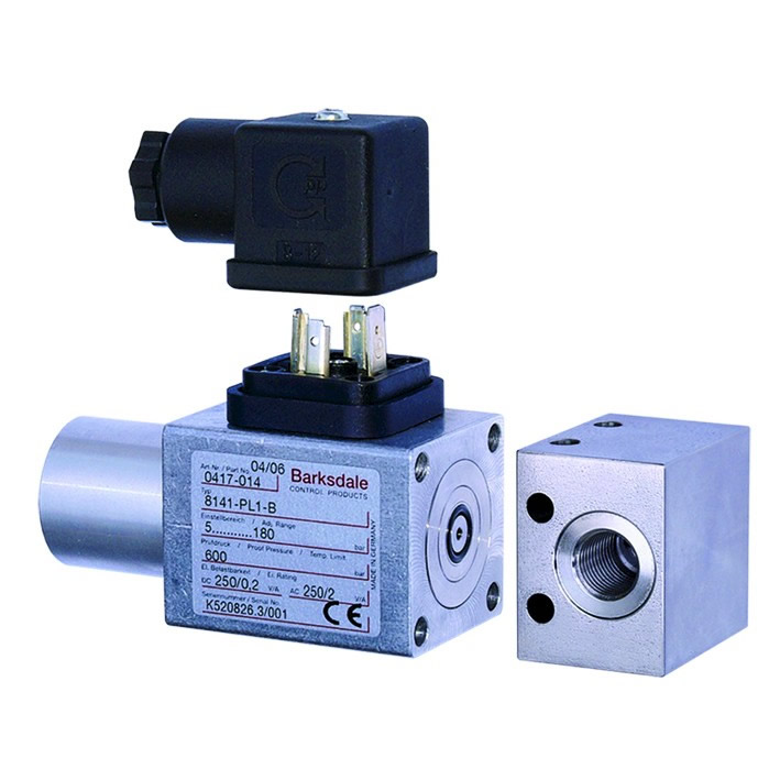 Barksdale 8000系列機械開關集Barksdale緊湊型開關所有之經驗和積累,在競爭激烈的行業內享有頂級質量和可靠性的口碑。通過6至8,700 psi(0.6至600 bar)的6個不同壓力范圍,客戶可以選擇膜片型或活塞型,以滿足其特定應用需求。CETOP法蘭螺栓連接的壓力端口塊的大量選擇為客戶提供了靈活性,可以獨立于開關訂購各種壓力端口,從而降低庫存成本。Barksdale Series 9000 pressure switch offers uncompromising performance in a compact design. As a smaller sibling to the Series 8000, the Series 9000 measures 1.2 x 1.2 x 3.8 inches. It features a long pressure spring for precise switch point adjustments and excellent accuracy at +/- 2% of full scale. Additional features include an adjustable pressure range from 90 to 5800 psi with a proof pressure up to 8700 psi, standard aluminum body construction and a tamper-resistant adjustment set screw. Options include factory preset, US or European standard process connections and either NBR or FKM seals. The Series 9000 has been proven in the field for years in Europe, providing reliable performance in stationary and mobile hydraulics, machine tool and factory automation, making it a good choice for your pressure switch needs。