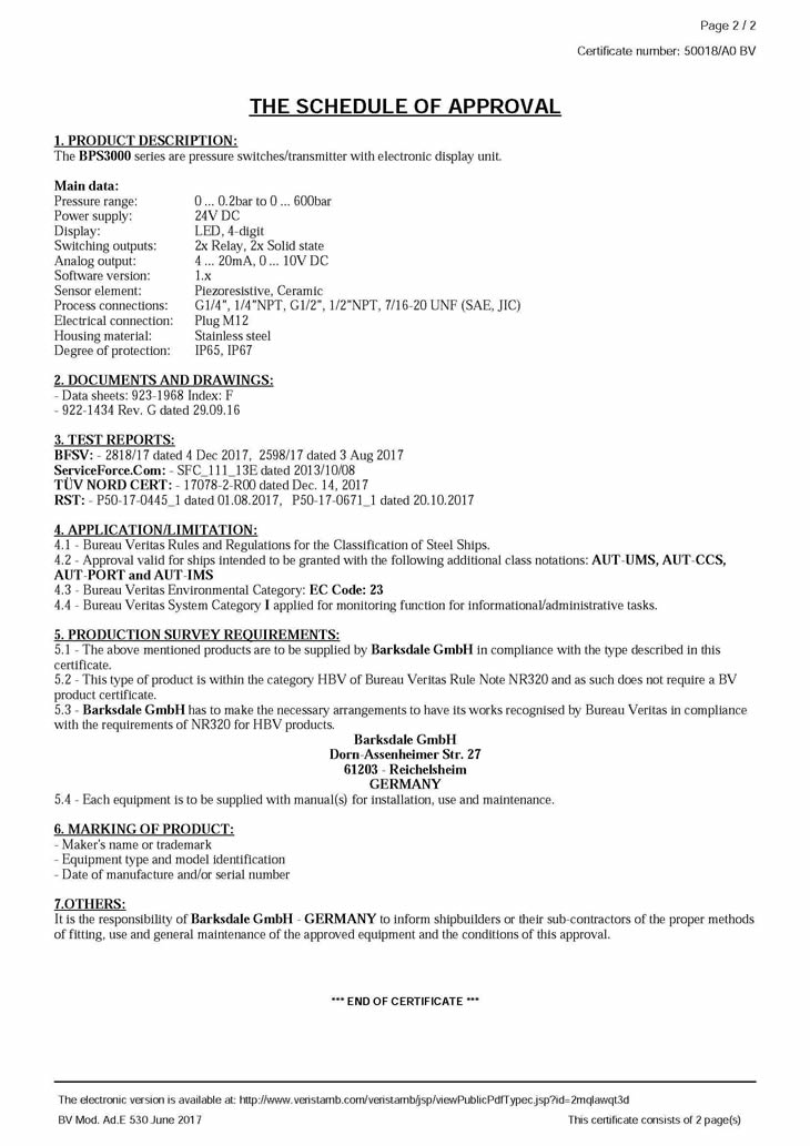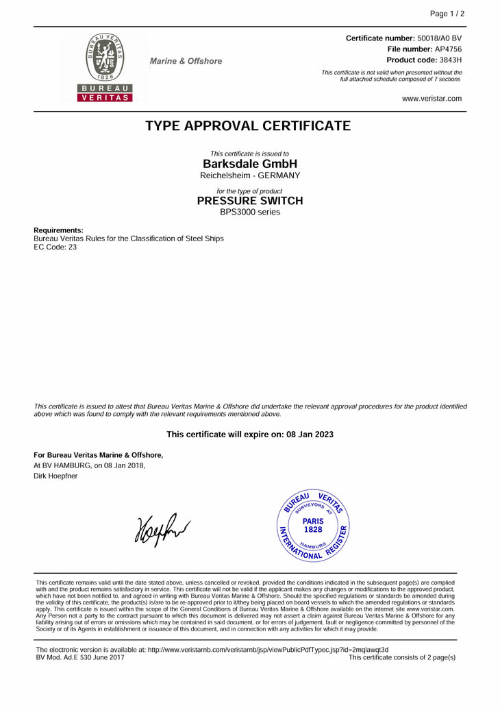 BPS3000系列電子壓力開關(guān)產(chǎn)品獲得BV船級(jí)社認(rèn)證