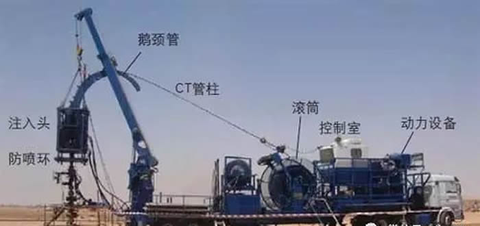 使用功能復雜,結構也比較復雜。其中基本的幾個功能裝置包括連續油管注入頭、連續油管滾筒、動力系統、控制臺、井口防噴器組……