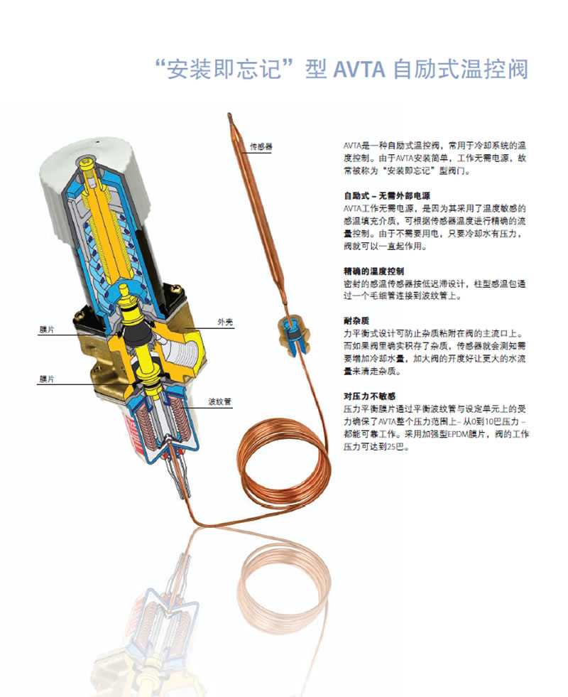 AVTA是一款適合用于冷卻應(yīng)用的自勵(lì)式溫控閥。該閥門常和液壓站配套使用,并通常被稱為“免維護(hù)”閥,因?yàn)樗鼡碛性跀?shù)十年保持正常工作的巨大可靠性。