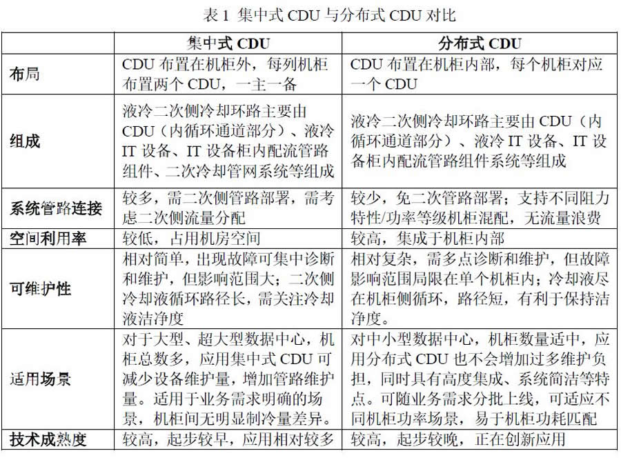 表1 集中式 CDU 與分布式 CDU 對比