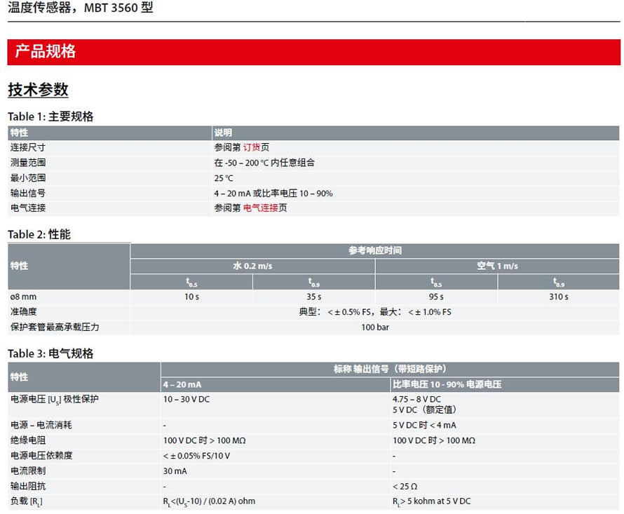 通過采用 MBT3560,我們可將標準溫度傳感器技術和我們 MBS 壓力傳感器的電氣連接與新開發的電子設備相結合,從而形成了一款帶內置變送器的緊湊型溫度傳感器。