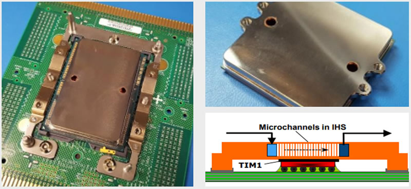 英特爾的這種創新的液體冷卻技術設計被稱為微通道集成散熱器(Microchannel IHS,即 MC-IHS)。2021 年第 20 屆 iTherm 會議上,英特爾首次在會議論文中展示了 MC-IHS 原型。熱測試結果表明,MC-IHS 技術的冷卻能力比標準冷板高出約 30%,在冷卻負荷大于1000 W 的情況下,Rf-in 可達到約 0.05 °C/W。