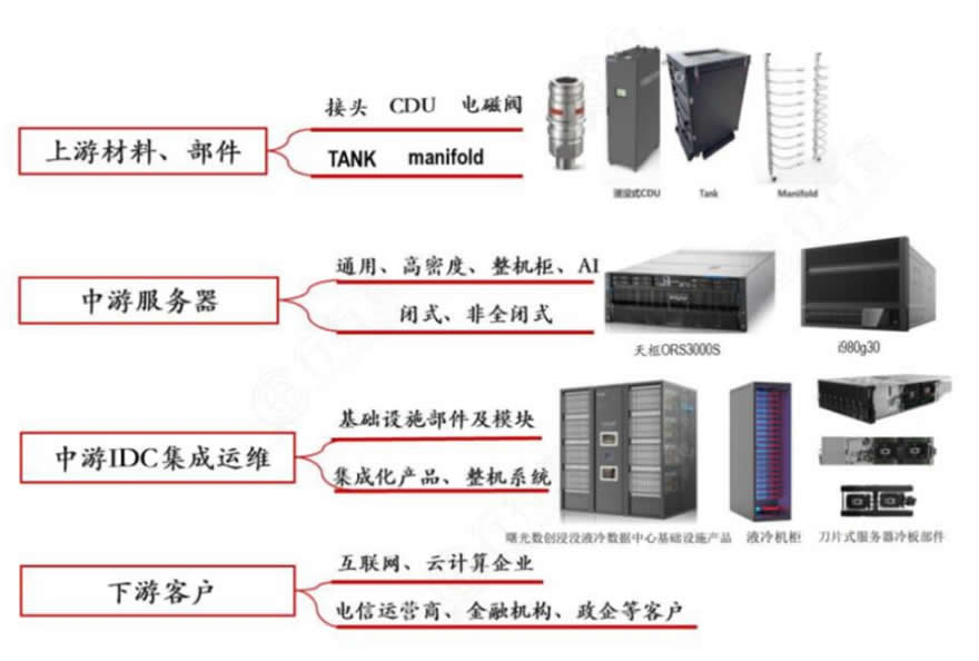 中游主要為液冷服務器,也是產業鏈的核心。