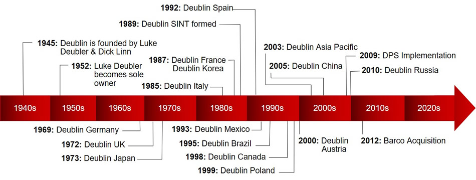 旋轉(zhuǎn)接頭廣泛使用于各種產(chǎn)業(yè)機(jī)械中,可以將水、油、冷卻液、氣體、電等介質(zhì)由固定端傳遞經(jīng)至旋轉(zhuǎn)端,完成冷卻、傳遞動(dòng)力等工作。 Deublin 公司于 1945 年成立于美國(guó)芝加哥,歷經(jīng) 80 年的發(fā)展與考驗(yàn),成為轉(zhuǎn)接頭的領(lǐng)導(dǎo)品牌。專利機(jī)械式密封件( Mechanical seals )可在高速、高壓旋轉(zhuǎn)下維持完全密封不泄漏,并適應(yīng)各種介質(zhì)的轉(zhuǎn)換。舉凡工具機(jī)械、鋼鐵、造紙、橡塑、半導(dǎo)體等產(chǎn)業(yè),都仰賴 Deublin 旋轉(zhuǎn)接頭產(chǎn)品。 Deublin 公司在全球五處(美國(guó)、德國(guó)、意大利、中國(guó)、巴西)設(shè)有先進(jìn)生產(chǎn)基地,并結(jié)合分公司與代理商形成完善的全球服務(wù)網(wǎng)絡(luò)( Global Network )。