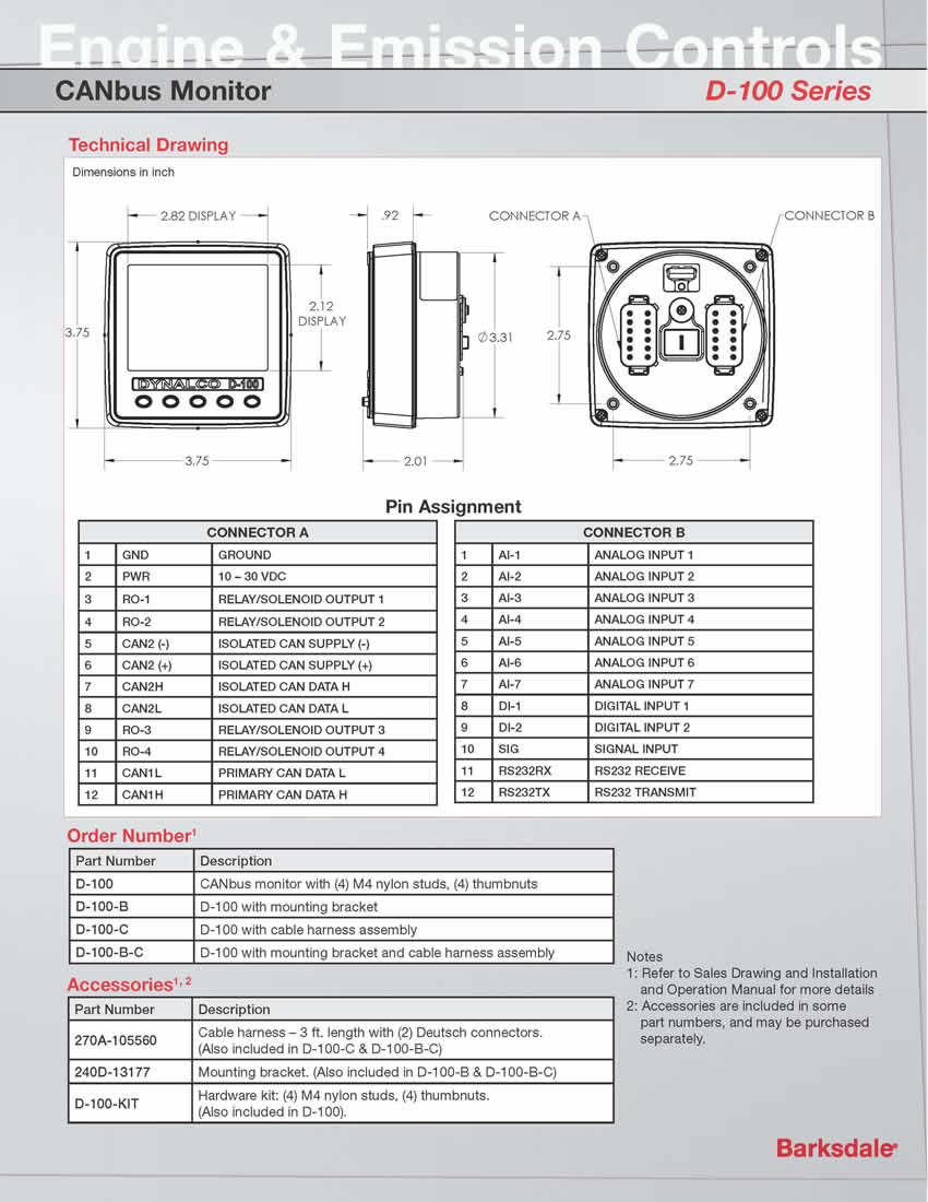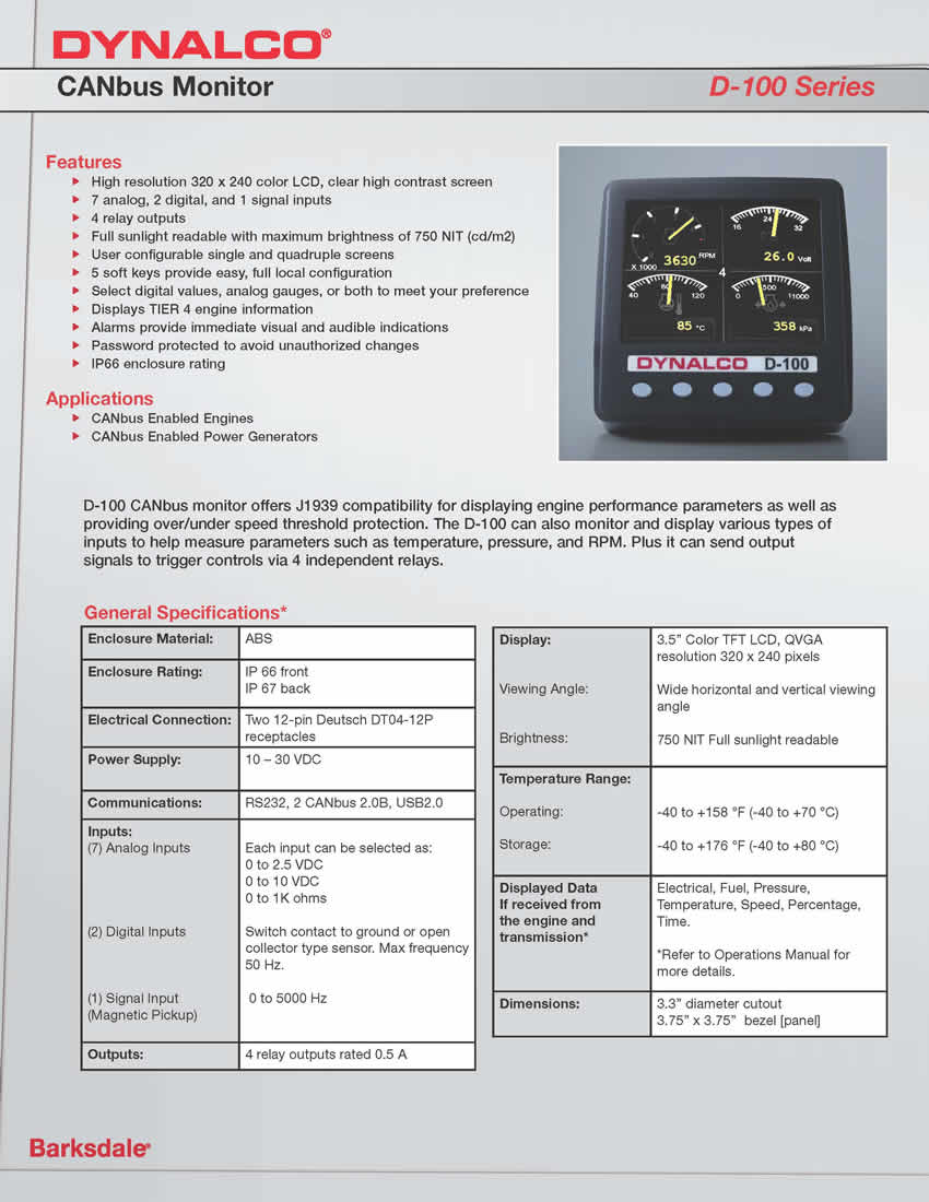 - D-100 CANbus監(jiān)控器-Dynalco 發(fā)動機和排放控制