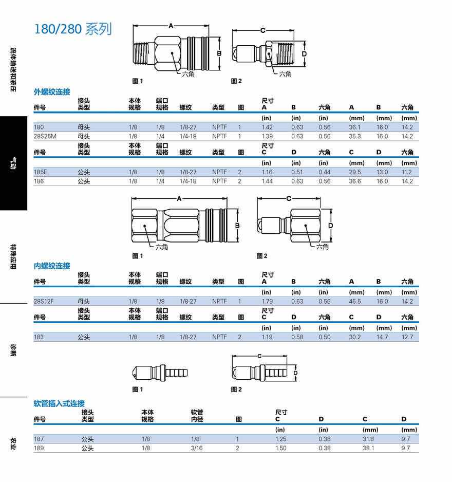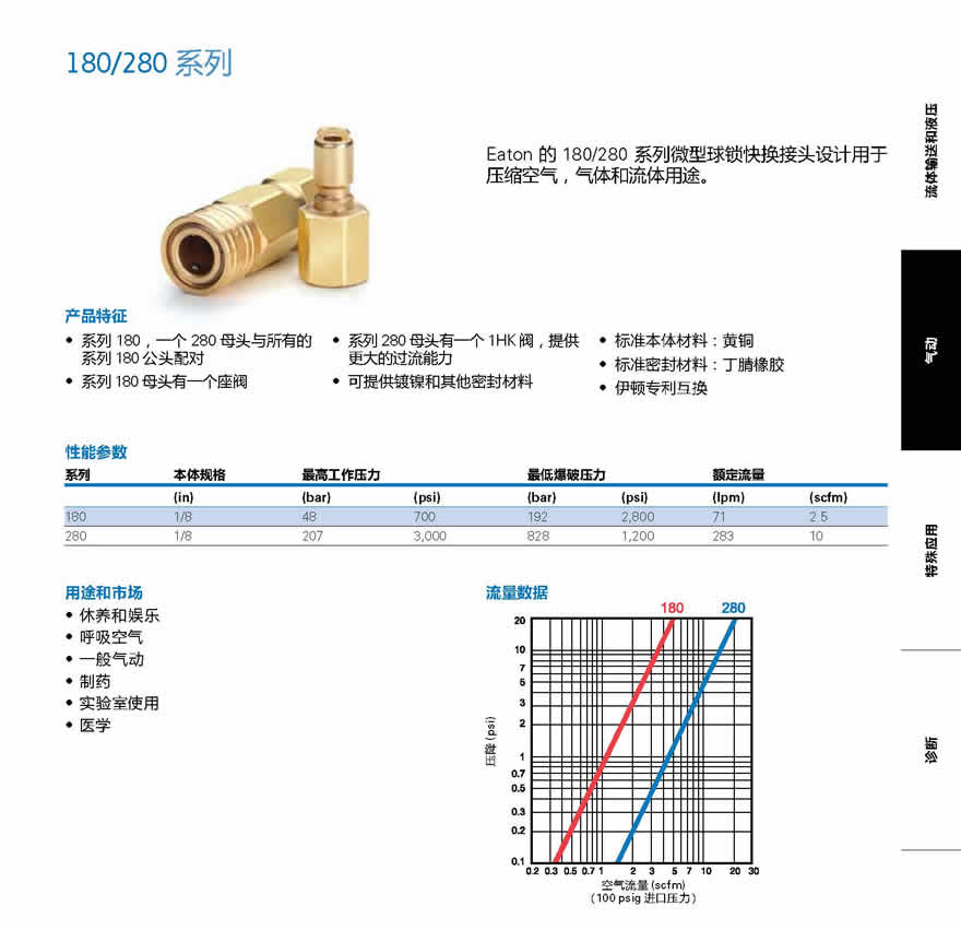 180/280系列是小型接頭,設計用于處理壓縮空氣,氣體,液體及水.