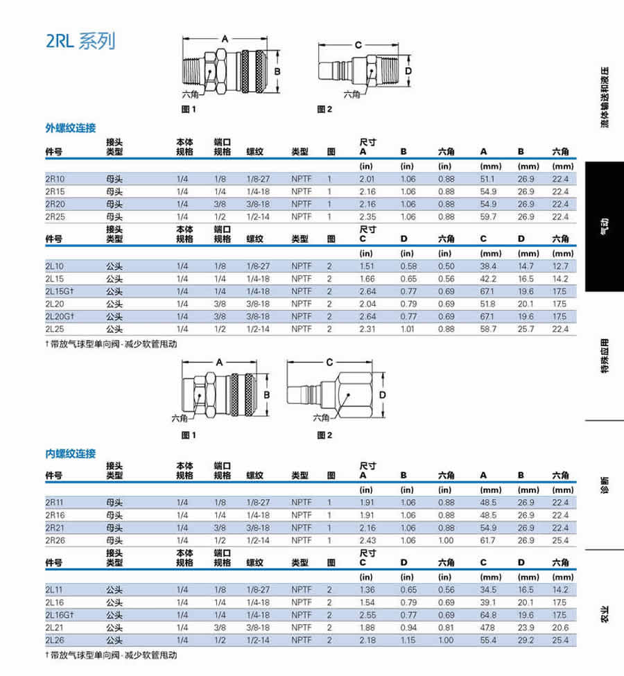 - 2RL與大多數(shù)3/8''接頭流量相當(dāng)
