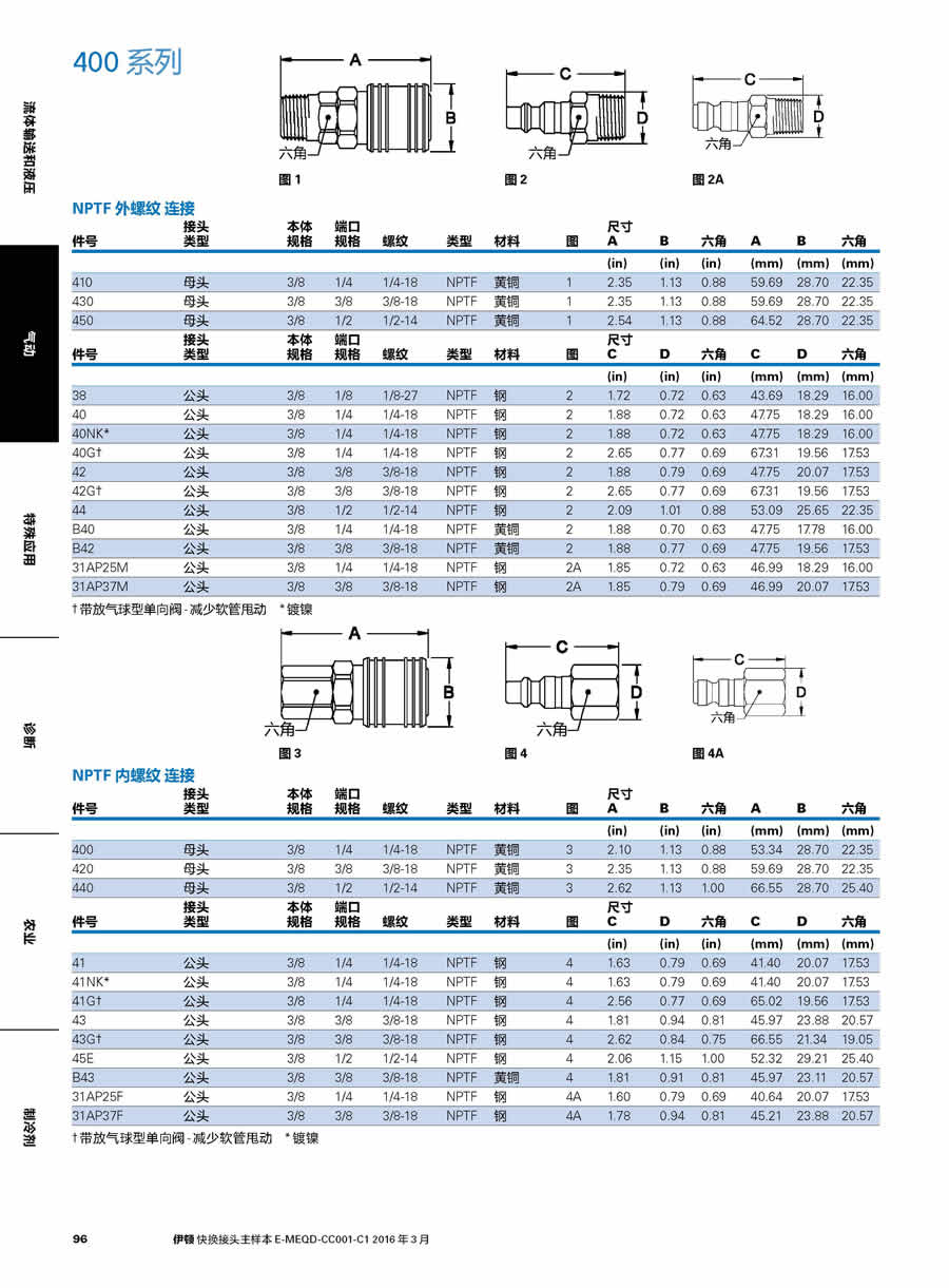 - 400系列母頭可適用Tru-Flate標準公頭和Industrial標準公頭