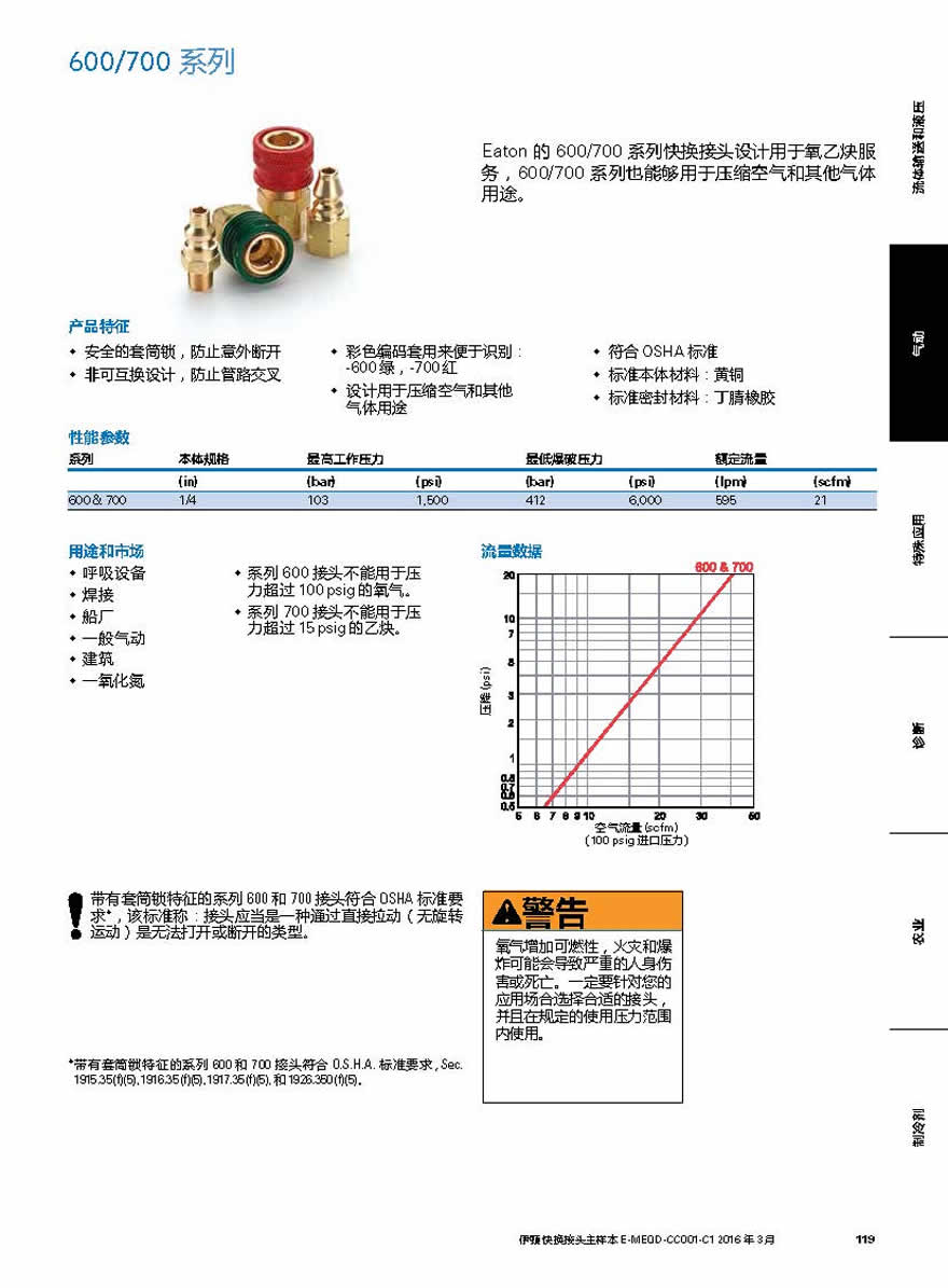 - 600系列和700系列接頭可以用于處理壓縮空氣和其它氣體