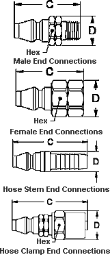 件號標準* 乙炔使用 接頭類型 本體規(guī)格 端口規(guī)格 螺紋 類型 材料 圖 尺寸 C D 六角 C D 六角