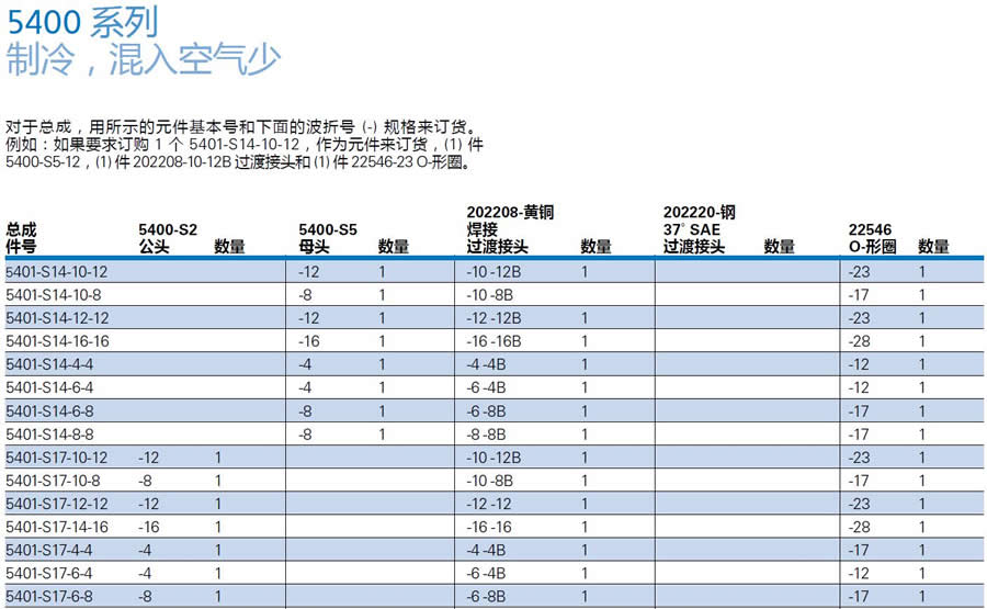 5410-6-8* 一套 1/2 9/16 9/16-18 SAE 37° (JIC) 5 107.4 (4.23) - - - - - - - -