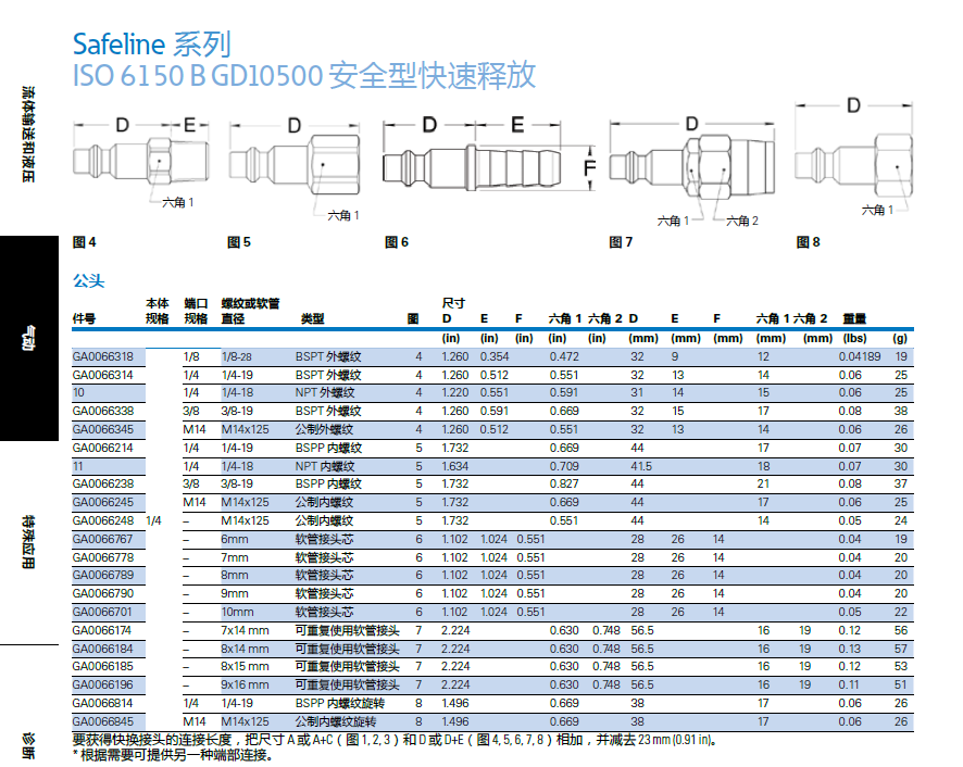 本體端口螺紋或軟管尺寸件號規格規格直徑類型圖 D EF六角 1六角 2D E F六角 1六角 2重量