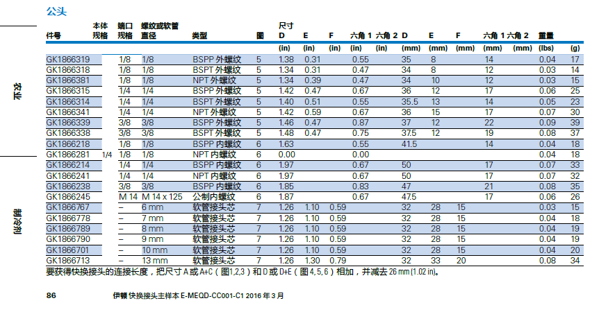 件號 規格 規格 直徑 類型 圖 D E F 六角 1六角 2 D E F 六角 1六角 2 重量
