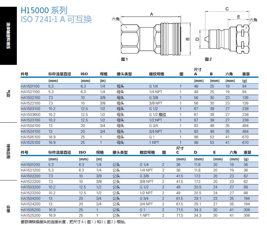 H15000 系列ISO 7241-1 A 可互換快換接頭