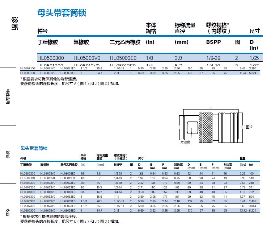 丁腈橡膠氟橡膠三元乙丙橡膠(in) (mm) BSPP 圖D E F 對邊寬D E F 對邊寬(lbs) (g)