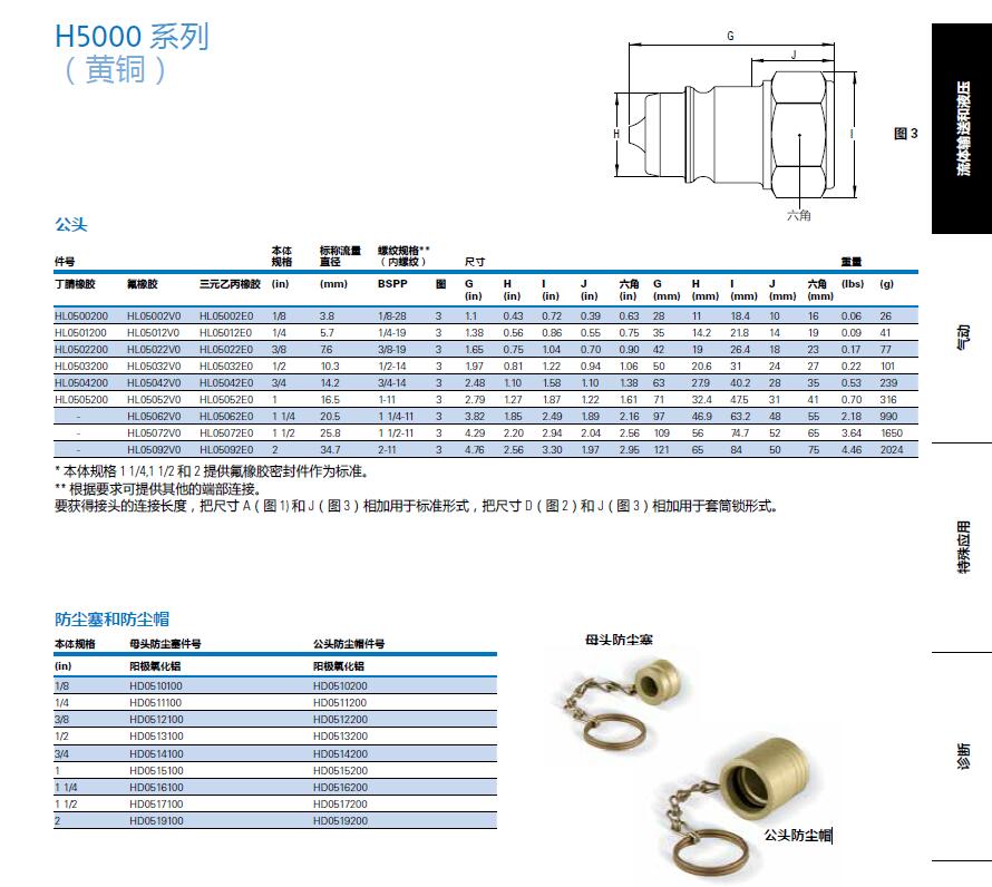 丁腈橡膠氟橡膠三元乙丙橡膠(in) (mm) BSPP 圖G H I J 六角G H I J 六角(lbs) (g)