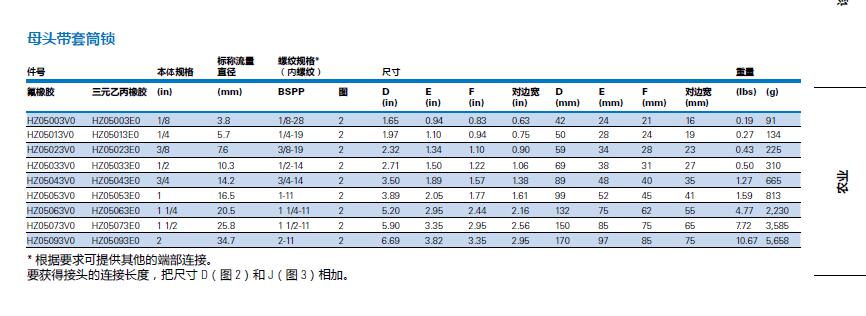 氟橡膠三元乙丙橡膠(in) (mm) BSPP 圖D E F 對邊寬D E F 對邊寬(lbs) (g)