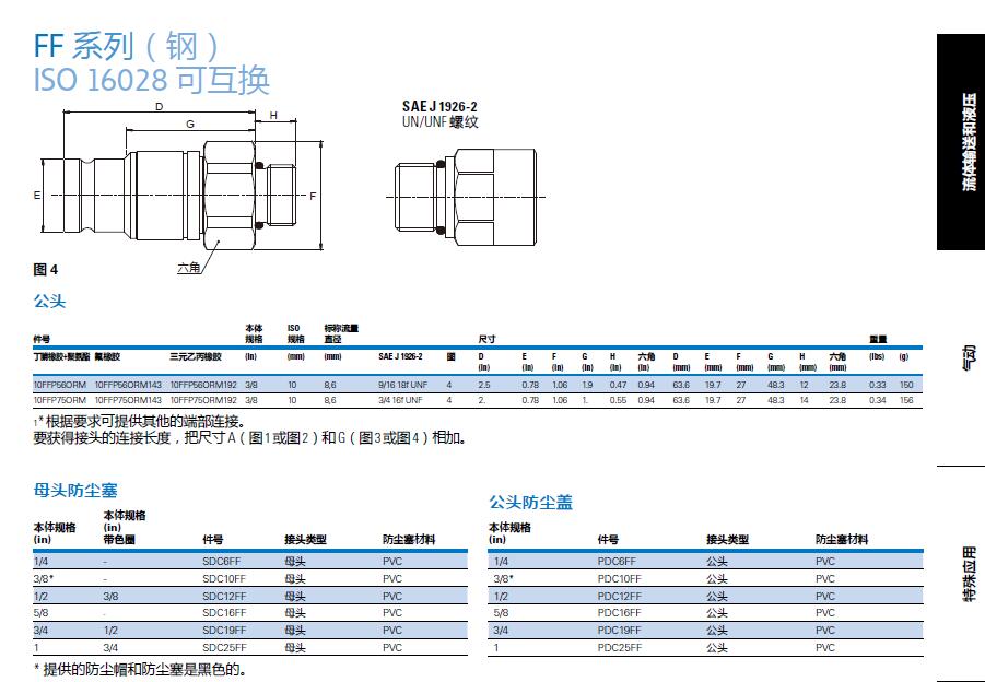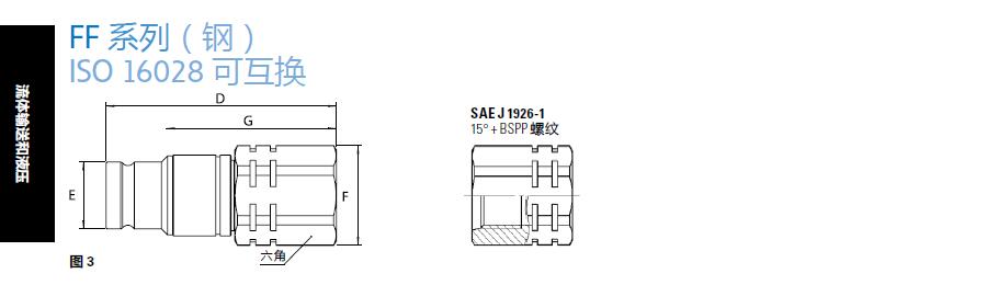 - FF 系列碳鋼材質 ISO 16028標準可互換快速接頭