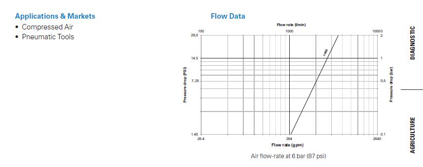 ***This flow rate is the maximum recommended for a suitable output from a pneumatic tool- For applications needing higher flow rates, it is recommended to select a larger size coupling-