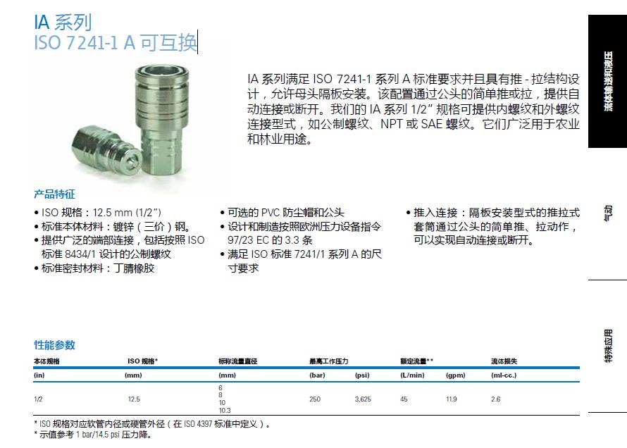 IA 系列 ISO 7241-1 A 可互換快速接頭