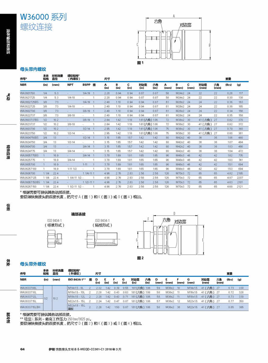 EATON W36000系列螺紋連接快換接頭