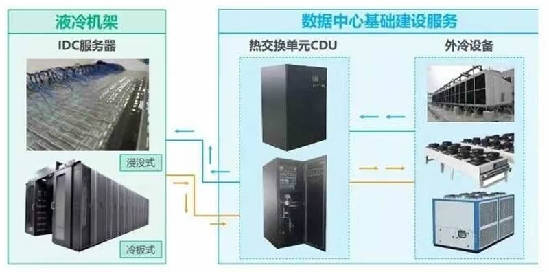 一種采用液體帶走發熱器件熱量的數據中心制冷方式,適用于需提高計算能力、能源效率、部署密度等應用場合。