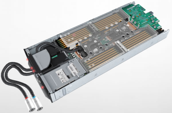 覆蓋在CPU等高熱部件上的液冷散熱器,能夠通過(guò)水循環(huán)直接帶走芯片的熱量。 |