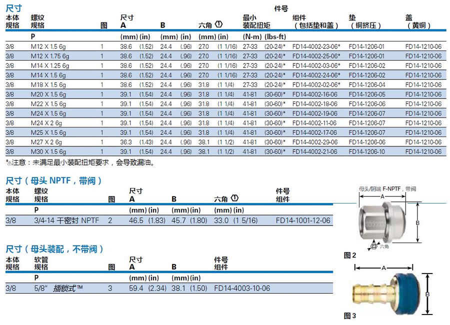 * 注意:未滿足最小裝配扭矩要求,會導致漏油。