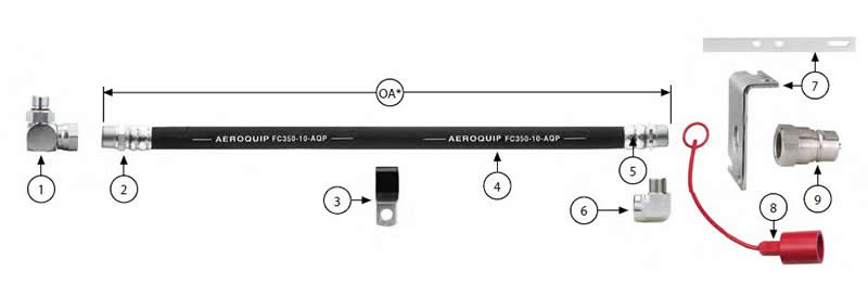 * OA indicates overall length of hose assembly in inches. (Available to Aeroquip only.)