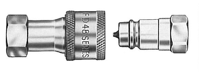 The FD48 Series coupling is designed to interchange with Parker Bruning SM-250 couplings.- Self-sealing poppet valves provide excellent high and low pressure sealing.