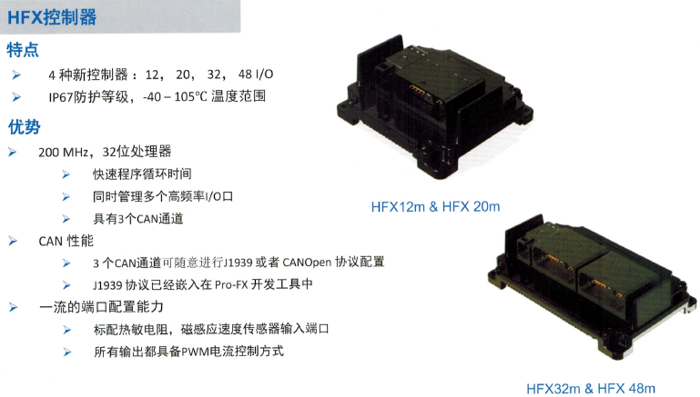 伊頓新一代Pro-FX電控產品組合所特有的硬件特性保證了她能夠在及其嚴酷的環境中持續不斷的正常工作,無論是震動,沖擊,酷熱,嚴寒,水侵,灰,均不會造成任何影響。且其獨有的符合歐洲EC標準的軟件開發平臺能夠讓我們的客戶以快的速度,合理的成本,安全的方式開發出電控系統,一舉超越對手。