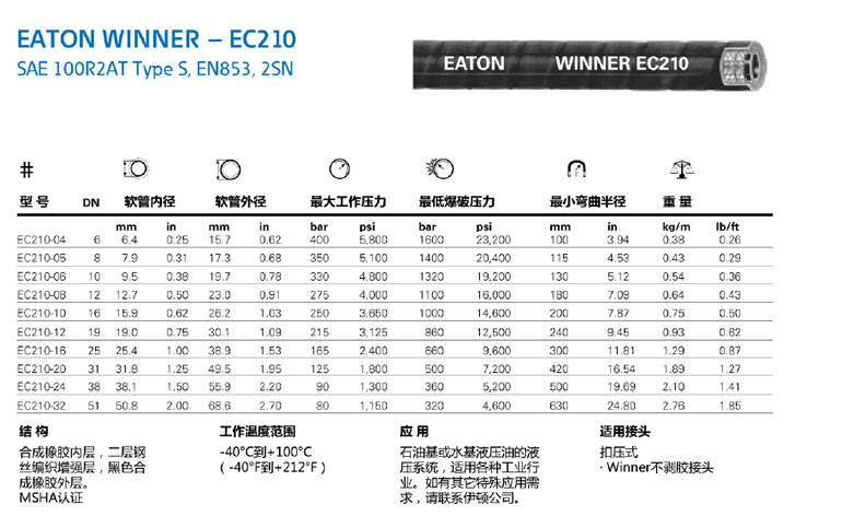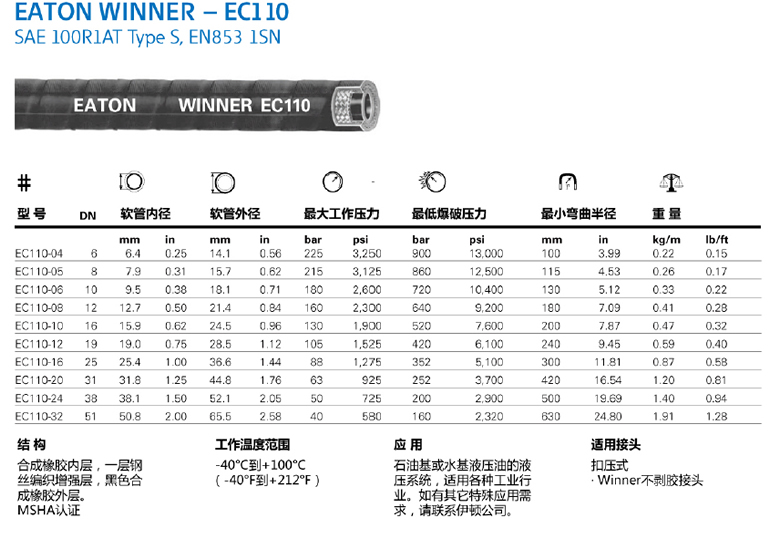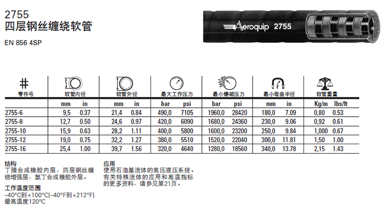 EATON/aeroquip軟管液壓軟管具有防腐、耐高溫、抗拉強度高 ,柔韌性好等諸多性能,而被廣泛采用在各行業的液壓工程中