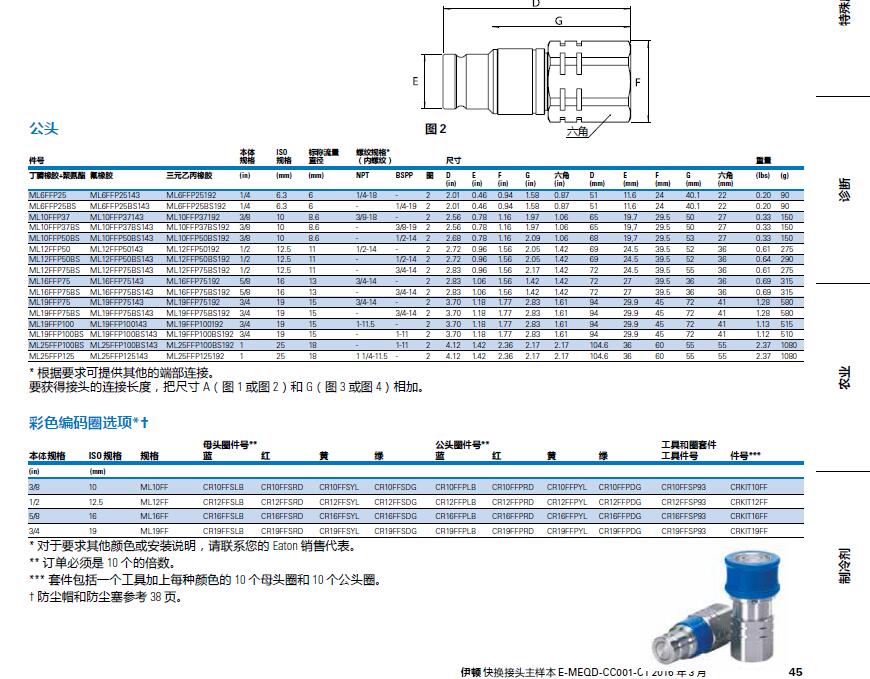 - EATON FFCUP系列ISO 16028帶壓操作平面快速接頭