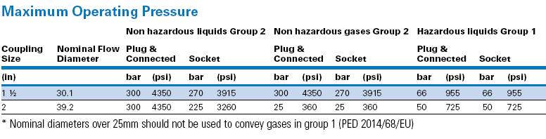 All couplings are designed and manufactured under Article 4.3 of the European Pressure Equipment Directive PED 2014/68/ EU. Couplings with nominal