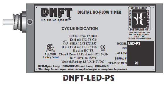 P/N 000507 DNFT-LED-PS DIGITAL NO-FLOW TIMER WITH DEDICATED PROXIMITY SWITCH. INSTALL ON DROPSA/LINCOLN/SBCO/LUBRIQUIP DIVIDER BLOCK. SWITCH RATING 2.5VA 240VDC