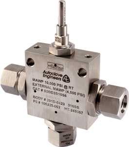 High pressure ball valves for subsea operation. Pressures to 20,000 psi (1379 bar) and water depths to 12,500 feet (3810 meters) .Parker Autoclave's high pressure subsea ball valves are capable of operating to 20,000 psi (1379 bar) and depths of 12,500 feet (3810 meters), in sizes 3/16", 1/4", 3/8", and 1/2". Standard ball valves are furnished in 316 SS with specials materials available. Our unique design innovations include an integral one-piece trunnion mounted ball and stem that eliminates the shear failure common in two piece designs, re-torqueable seat glands that result in longer seat life, and lower friction stem seal that reduces actuation torque and enhances cycle life.