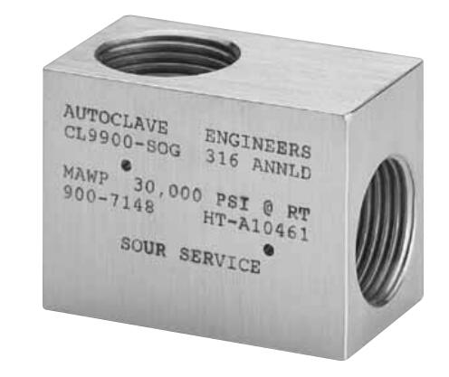 Parker Autoclave's SOGWO Series of high-pressure sour service fitting components are capable of operating to 30,000 psi (2068 bar) and range in size from 1/4" to 9/16" tube size. Parker Autoclave's high-pressure SOG fittings are designed for use with sour oil and gas (H2S) up to 30,000 PSI. SOG components are manufactured with materials and procedures specified for optimum resistance to H2S. These material specifications and manufacturing procedures are continually updated to incorporate the latest advances and customer requirements. SOG components meet or exceed all requirements of NACE MR0175. Type SOG components are rated up to 30,000 psi (2068 bar) at 100°F (38°C).