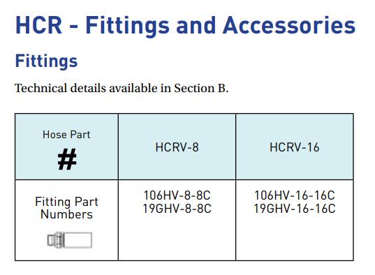 Parker HV Fittings are designed to be used with HCR Collapse Resistant Hydraulic Hose