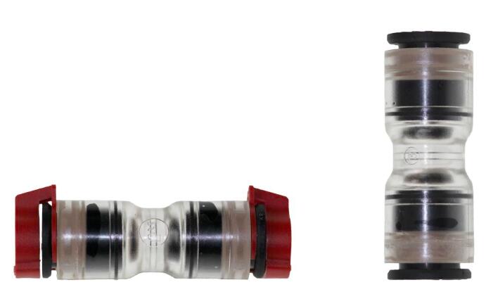 - Equal Tube-to-Tube Connector with Red Tamper-Proof Safety Clips