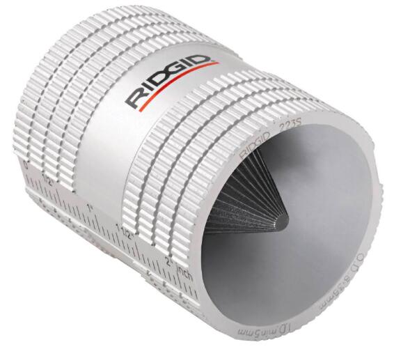 The tool features 45 cutting edges on its interior cone for fast and clean inner reaming and outer deburring/bevelling of tubing. The fluted body is shaped to fit comfortably in the palm of the hand. Just a quick twist of the wrist will deburr the O.D. or I.D. of the tube end.